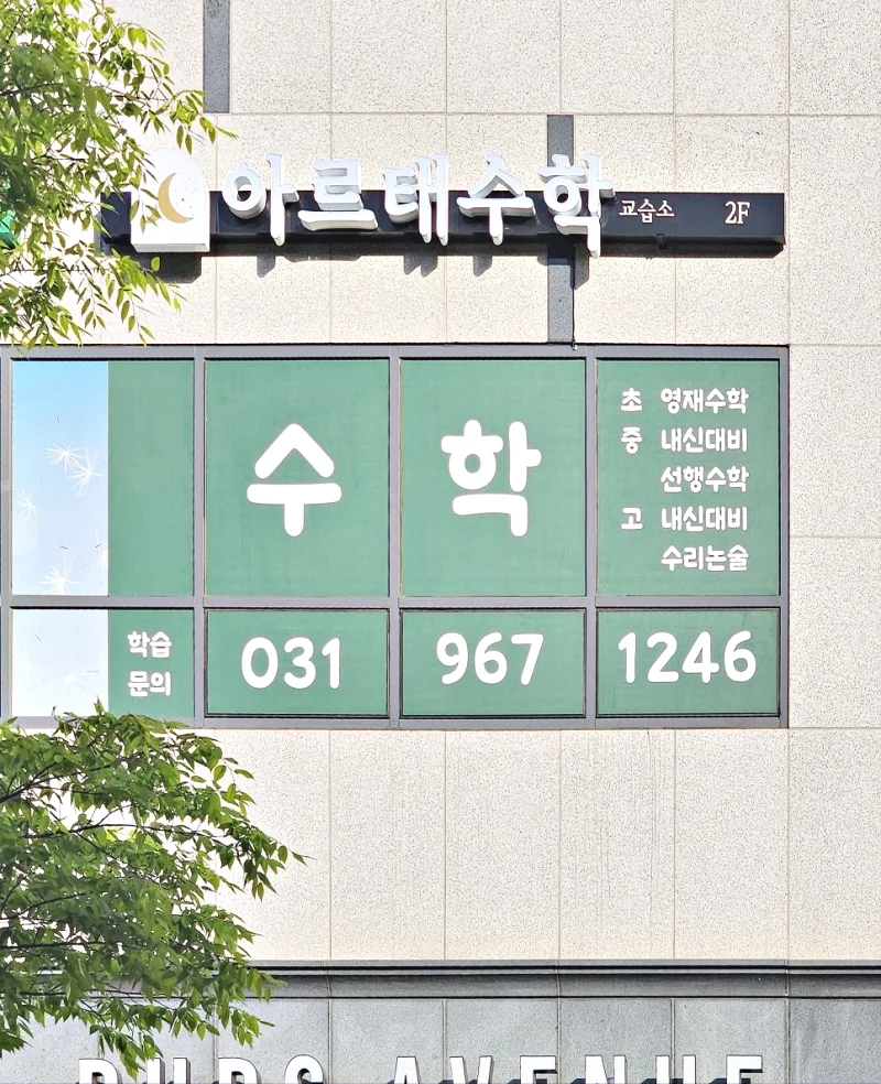 먼저 학원의 얼굴이라 할 수 있는 입구 파사드부터 살펴보겠습니다.